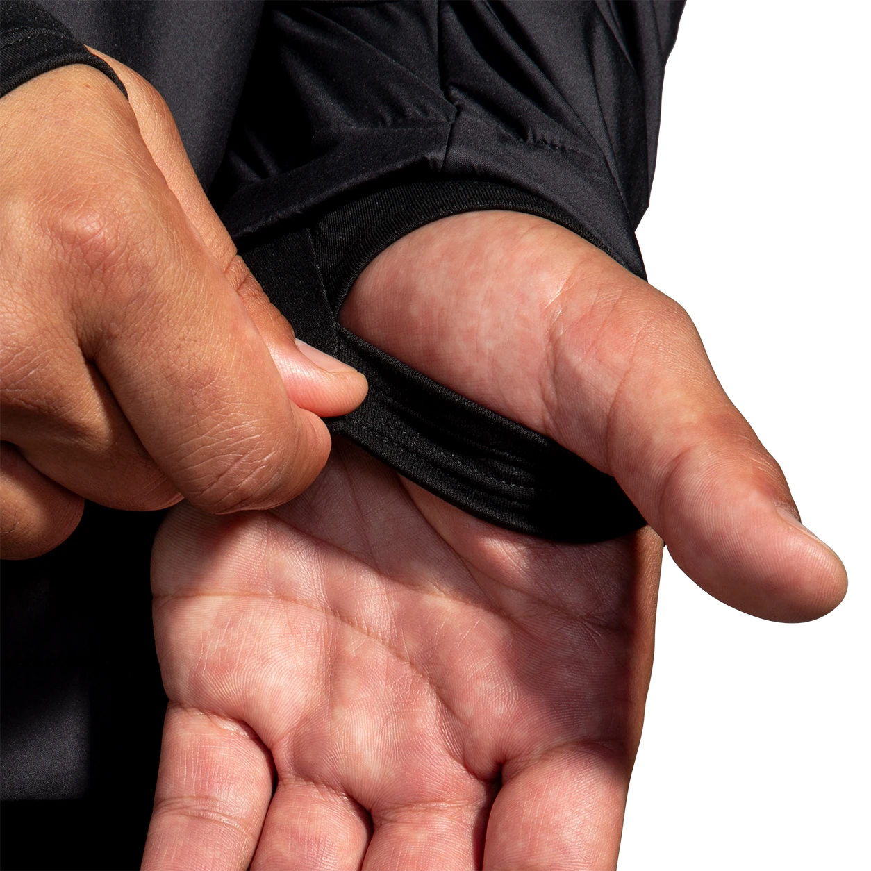 A men’s jacket designed for running in cold, wet weather, the Shield Hybrid Jacket 3.0 features windproof, water-repellent protection. The lightweight 80g THERMOLITE® insulation provides warmth, while fitted cuffs and a tall collar help hold that warmth close.