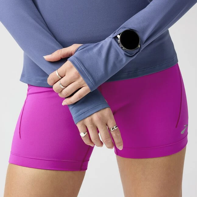 The softest layer in your running wardrobe just got an upgrade — our women’s half zip running top has a watch window so you can stay warm and toasty when you check your pace.