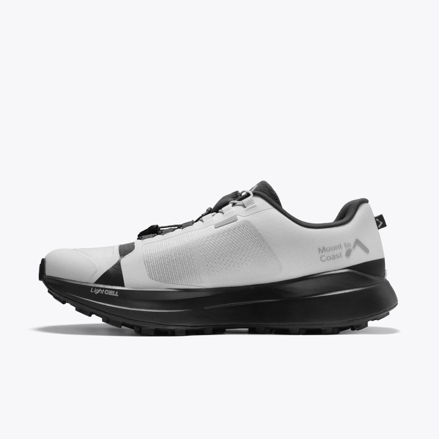 The Mount to Coast T1 is a trail running shoe designed for long-distance races and diverse terrains. It’s characterized by a lightweight and durable construction, a comfortable fit, and a focus on performance. The T1 features Mount to Coast’s signature TUNEDFIT Dual Lacing System, allowing for independent adjustment of the midfoot and forefoot. The shoe’s upper is made from a high-performance woven fabric reinforced with aramid fibers, and it incorporates a breathable, fast-drying anti-siphon knit tongue. The midsole is made from LightCELL, Mount to Coast’s proprietary PEBA-based foam, and the outsole features Vibram Megagrip rubber.