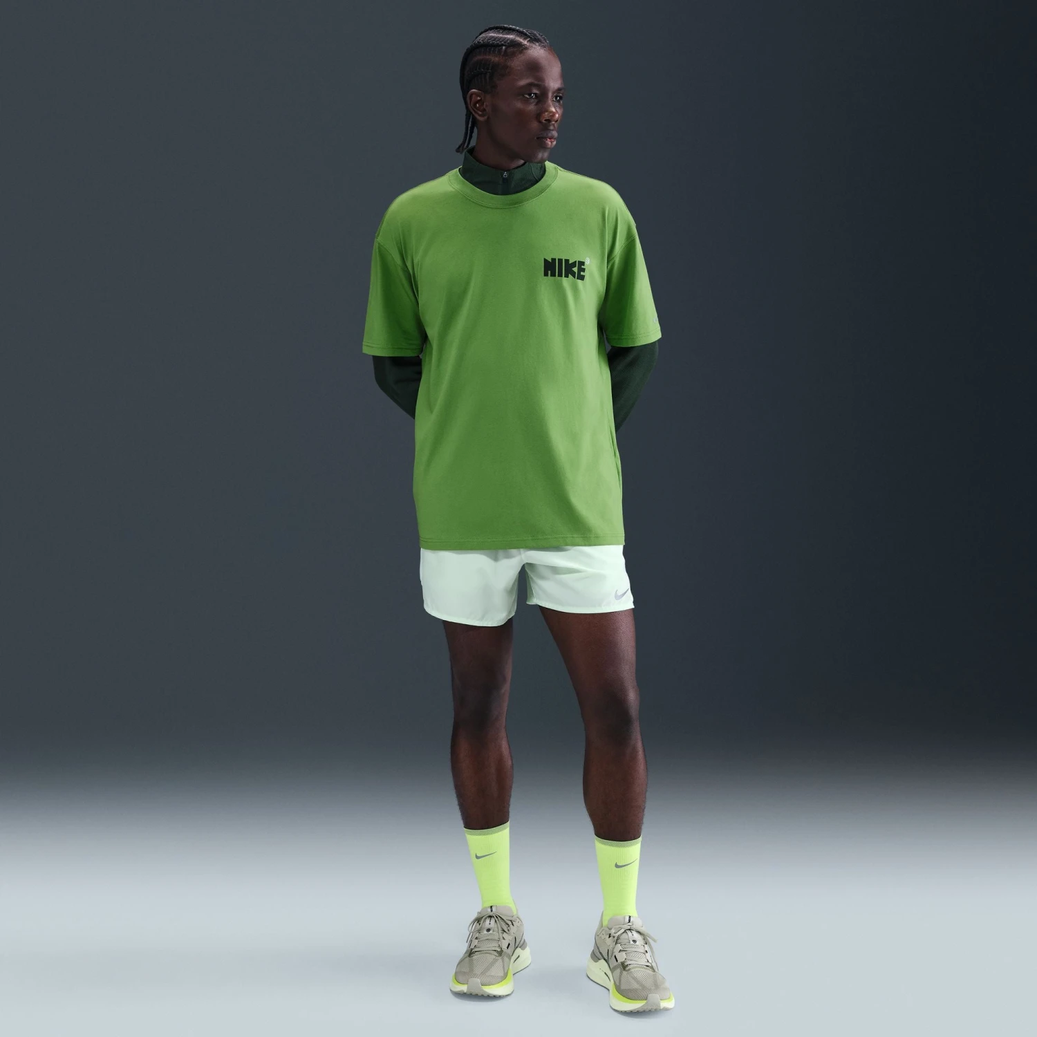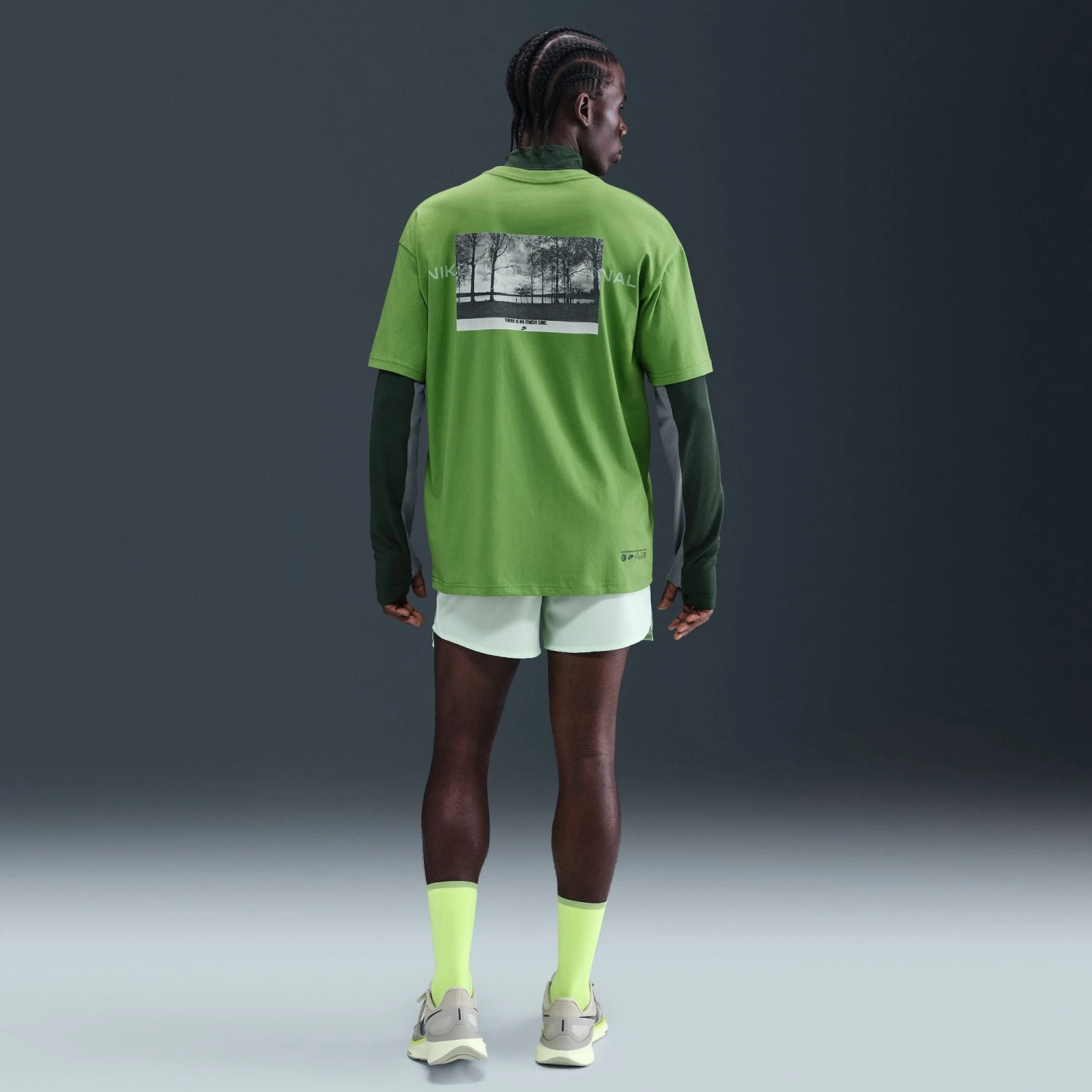 Move easy in this running tee. Its loose fit gives you a roomy feel and the midweight cotton fabric feels soft and comfortable.