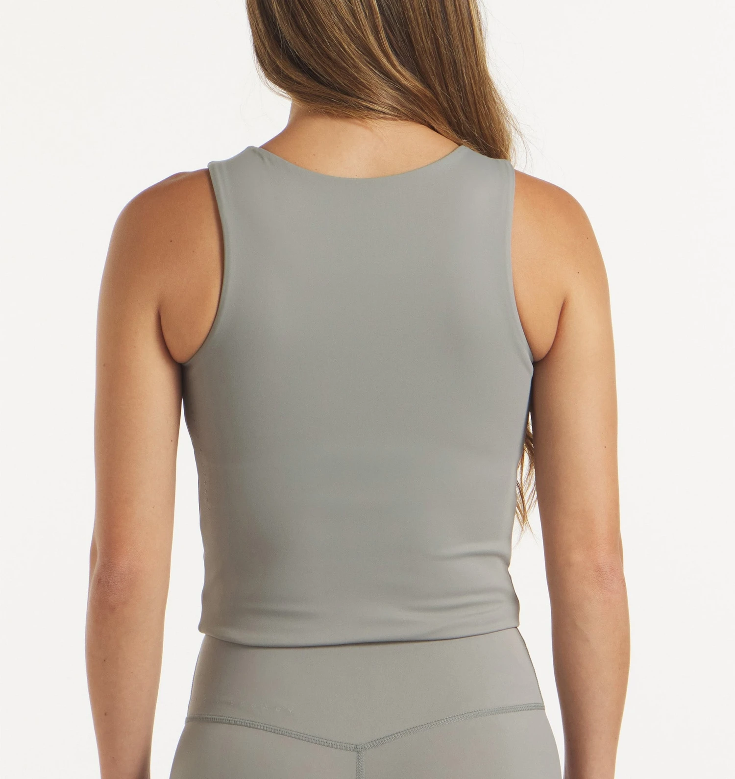 Effortlessly blends style and versatility with its ideal waist-length cut, giving you the option for an untucked “almost crop” look or a sleek bodysuit appearance when tucked in. Seamlessly layers over our Performa Longline Bra. This minimalistic essential goes beyond the ordinary tank top, making it a must-have in your closet.
